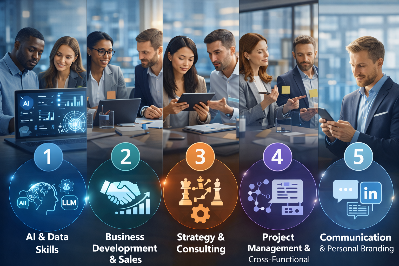In molte descrizioni dei profili di chi cambia lavoro si vede la combinazione di questi blocchi: ad esempio, un profilo commerciale che unisce AI e dati, un consulente che lavora su strategia e gestione del cambiamento, un profilo HR che integra digitale, analisi e comunicazione.